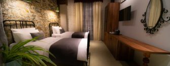 Ideal for friends, this charming room draws inspiration from local traditions and features authentic regional decor. The walls are adorned with natural mountain stone, adding a rustic yet elegant touch to the space.
